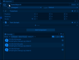 그래서A 객체에서B 객체의Awake함수를 호출된 상태로 가정해선 안된다. -