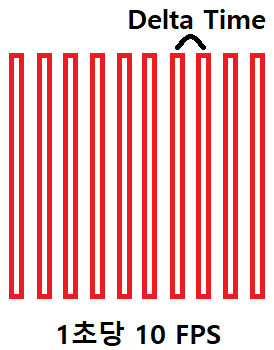 1초 에 10 FPS, 1/10 초, 즉 deltaTime 은 0.1 초 라고 할 수 있다.