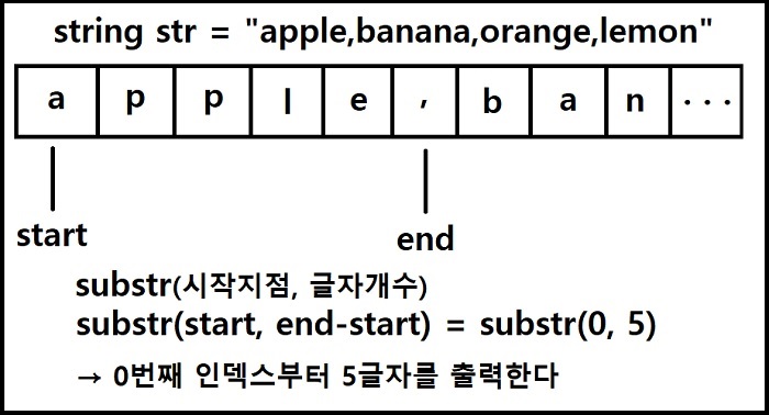 - 두번째 인자 : 자르고 싶은 문자열의 길이